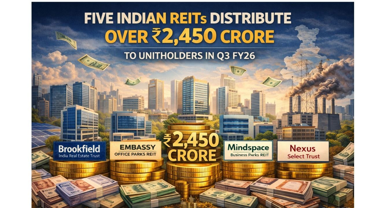 India’s five listed REITs distributed over ₹2,450 crore to 3.8 lakh unitholders in Q3FY26, managing 185 million square feet of grade A office and retail space and exceeding ₹2,50,000-crore AUM, reflecting robust sector growth.Read More